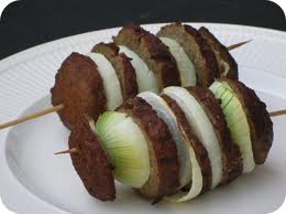 ’..bear’s dick (berenlul), is a sliced meatball with fried onion rings on a wooden skewer, often served with peanut sauce (pindasaus).’’