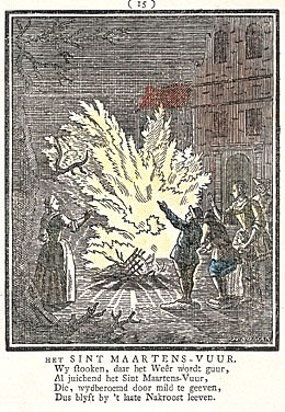 Het licht van alle lampionnen, de lange kinderoptocht naar het vuur op het plein en dan als hoogtepunt een soepel paardrijdende Sint Maarten die zwierig zijn mantel in tweeën scheurde, om een helft aan een arme sloeber te geven. En wij die keihard zongen: ‘Sintermertes Veugelke – Haet ein roëd-wit-keugelke-en-heaeaeaeat ein blauw stertje, van zien Hoepsa Sintermerte.’