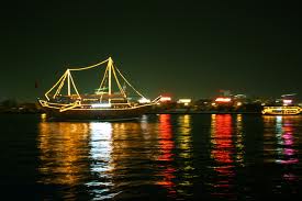 De zoete rookwolk van de lokale sisha-bars aan de rivierkade is de plek waar je kunt ontsnappen van alle gekte, met je rug naar de wolkenkrabbers toe. Jonge stellen, maar ook vrouwen alleen op leeftijd – mijn leeftijd – roken rustig een waterpijp terwijl ze hun mails bijwerken, kletsen of wegdromen. De mannen zitten buiten in kleine groepjes, eerste rang , drinken thee, wapperen hun pyama’s en zwijgen in rookwolken. Honderden lichtjes van de versierde veerbootjes dansend in het water, op de trilling van de hete nacht. Duizend en een nacht bestaat toch en smaakt naar rozentabak. Zwijgen in zoete wolken, dansende lichtjes en een beetje dobberen op de trage zwoele nacht vol gedempte stemmen. De rivier is thuis voor velen.